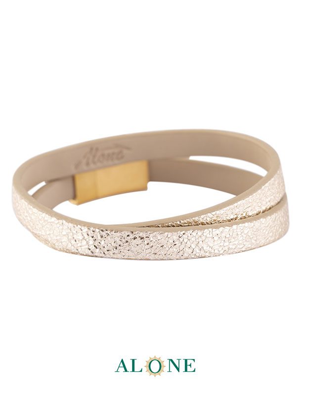 بند مچ چرم دو دور طلايي-كرم 11-2066