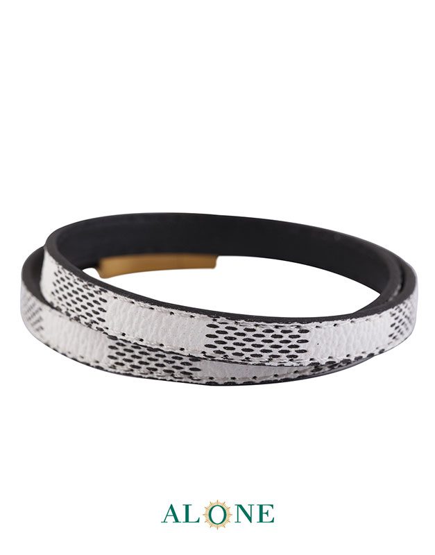 بند مچ چرم دو دور مشكي-سفيد 5-1-1066