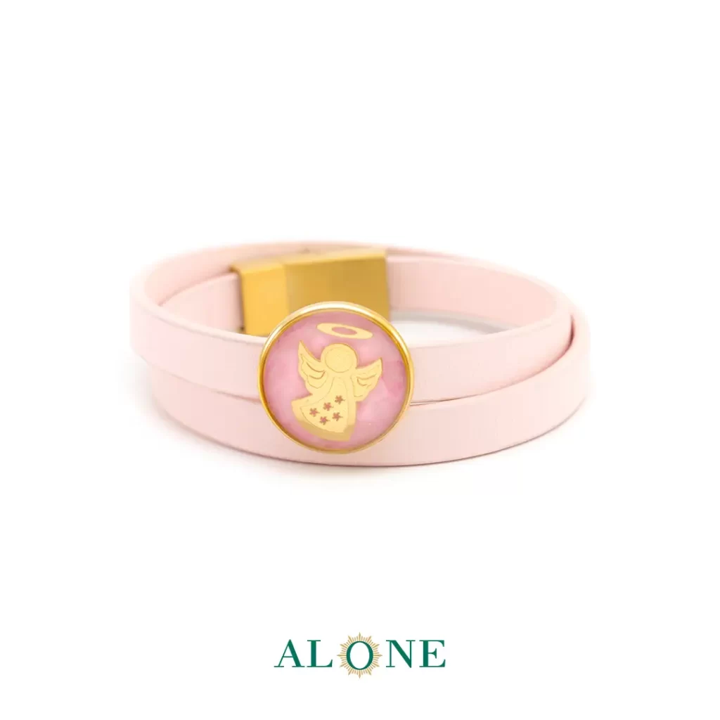 دستبند چرم دو دور زنانه اوپال صورتی فرشته