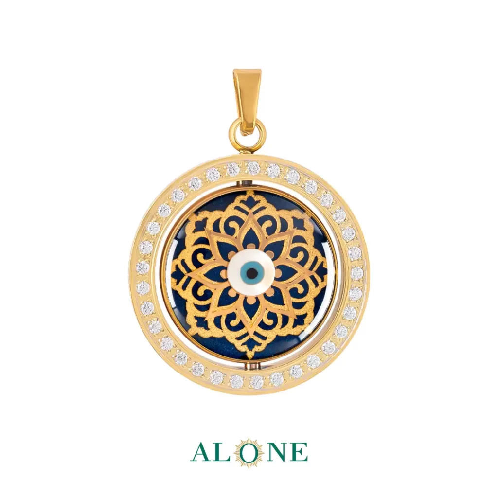 آویز دو رو گرد نگین دار چشم ببر سرمه ای ماهور/وان یکاد
