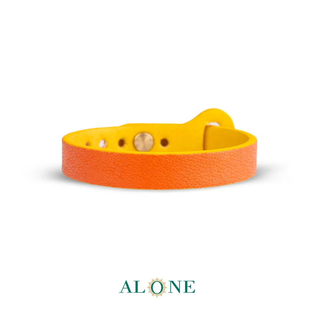 بند مچ چرم 10 ميلي متري مدل P زرد-نارنجی قفل نک