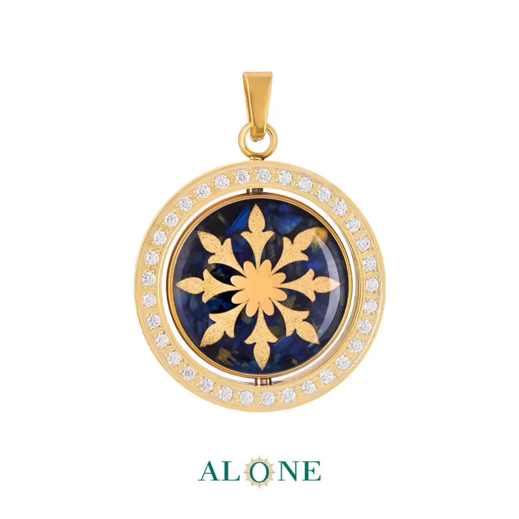 آویز دو رو گرد نگین دار لاجورد اسلیمی هشت پر/رقص سماع