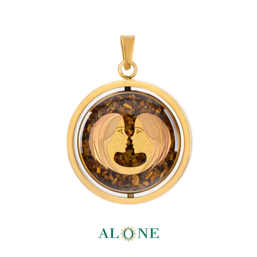 آویز دو رو گرد ساده چشم ببر قهوه ای خرداد/بته جقه