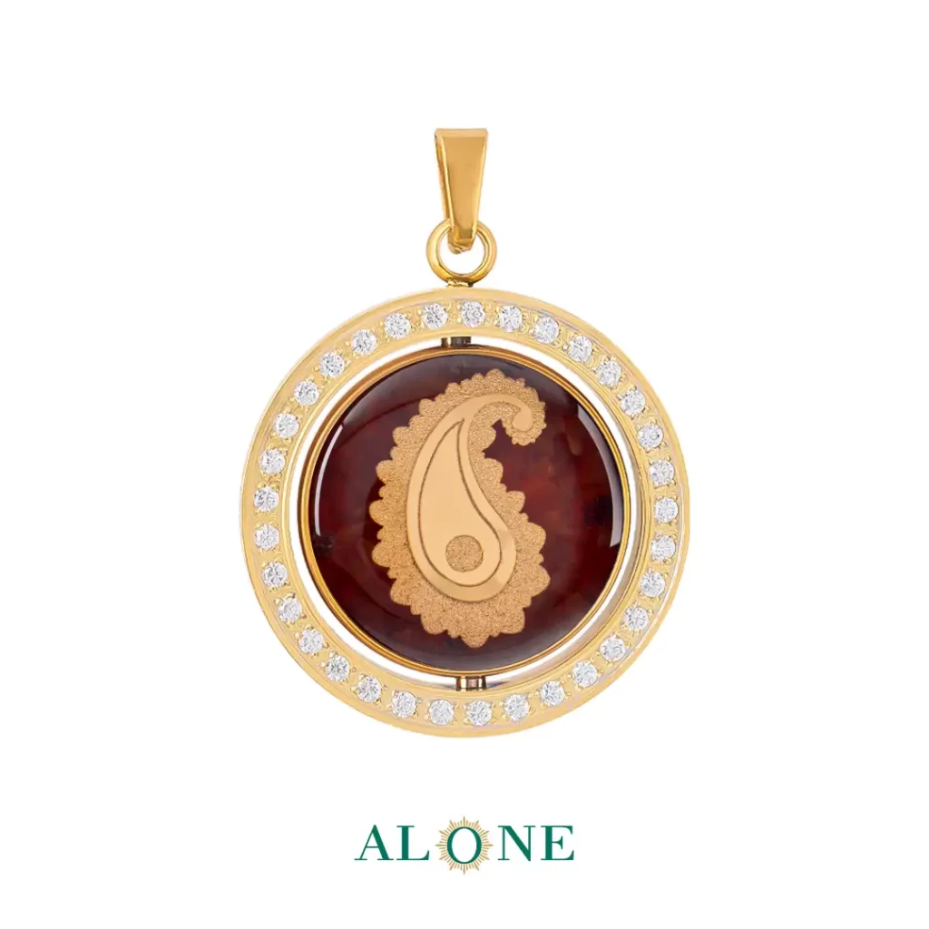 آویز دو رو گرد نگین دار عقیق بته جقه/پروانه