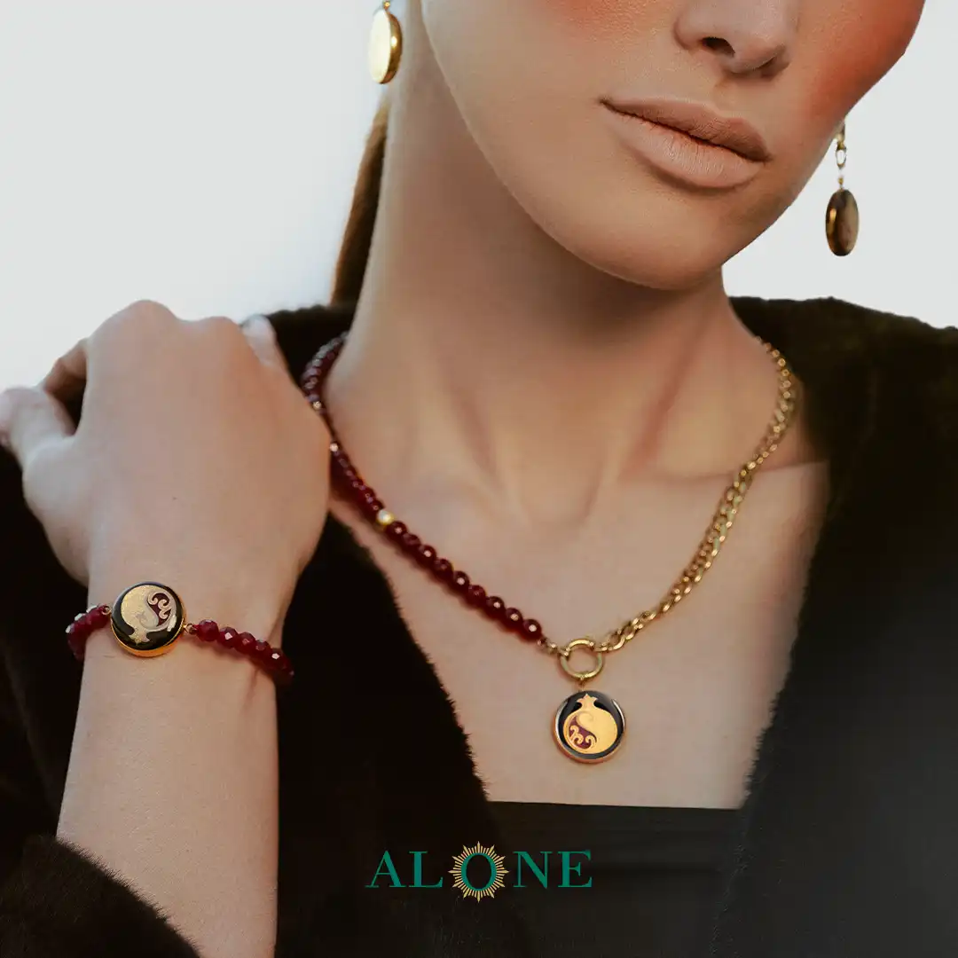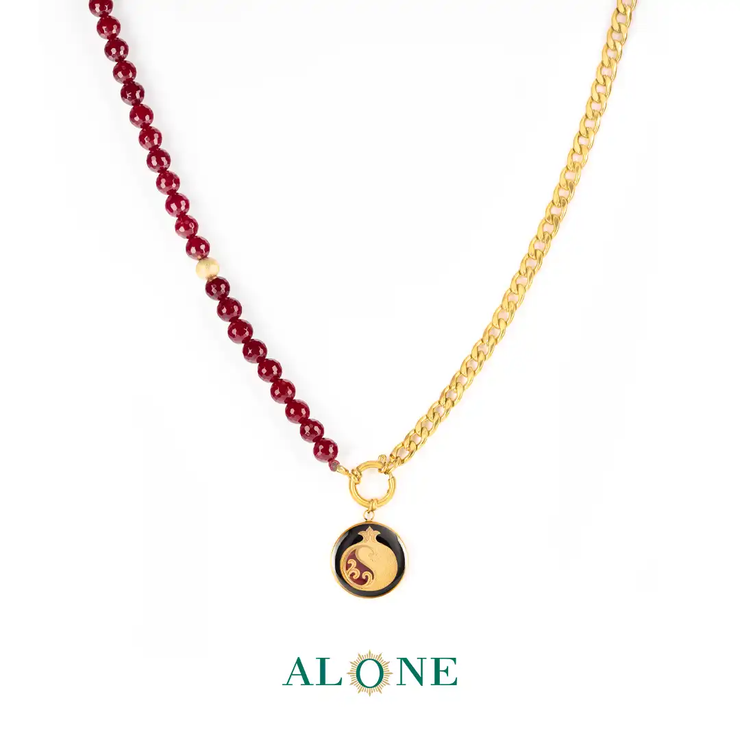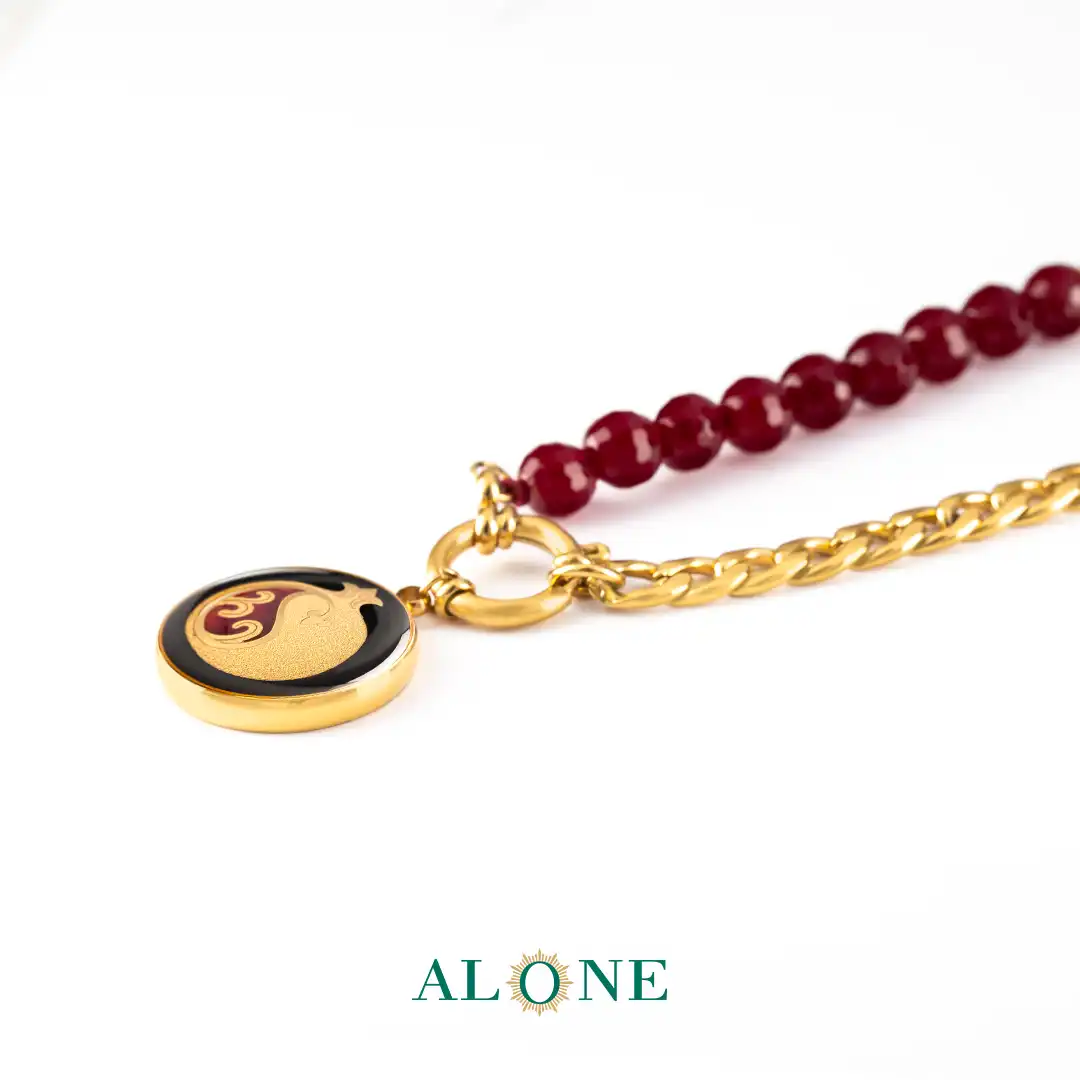 | جنس زنجیر | استیل رنگ ثابت+عقیق صورتی |