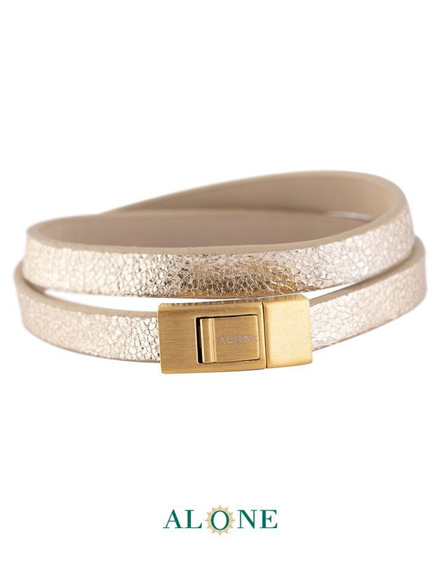 بند مچ چرم دو دور طلايي-كرم 11-2066