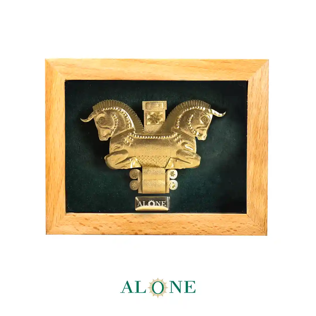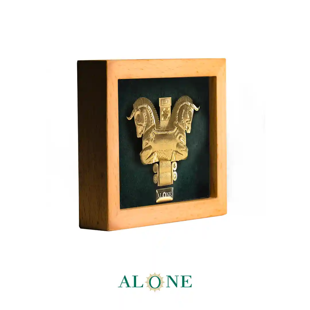 | ویژگی محصول | پس زمینه مخمل, جنس فریم کالا چوبی می باشد, نماد داخل از ورق طلا 24عیار استفاده شده است. |