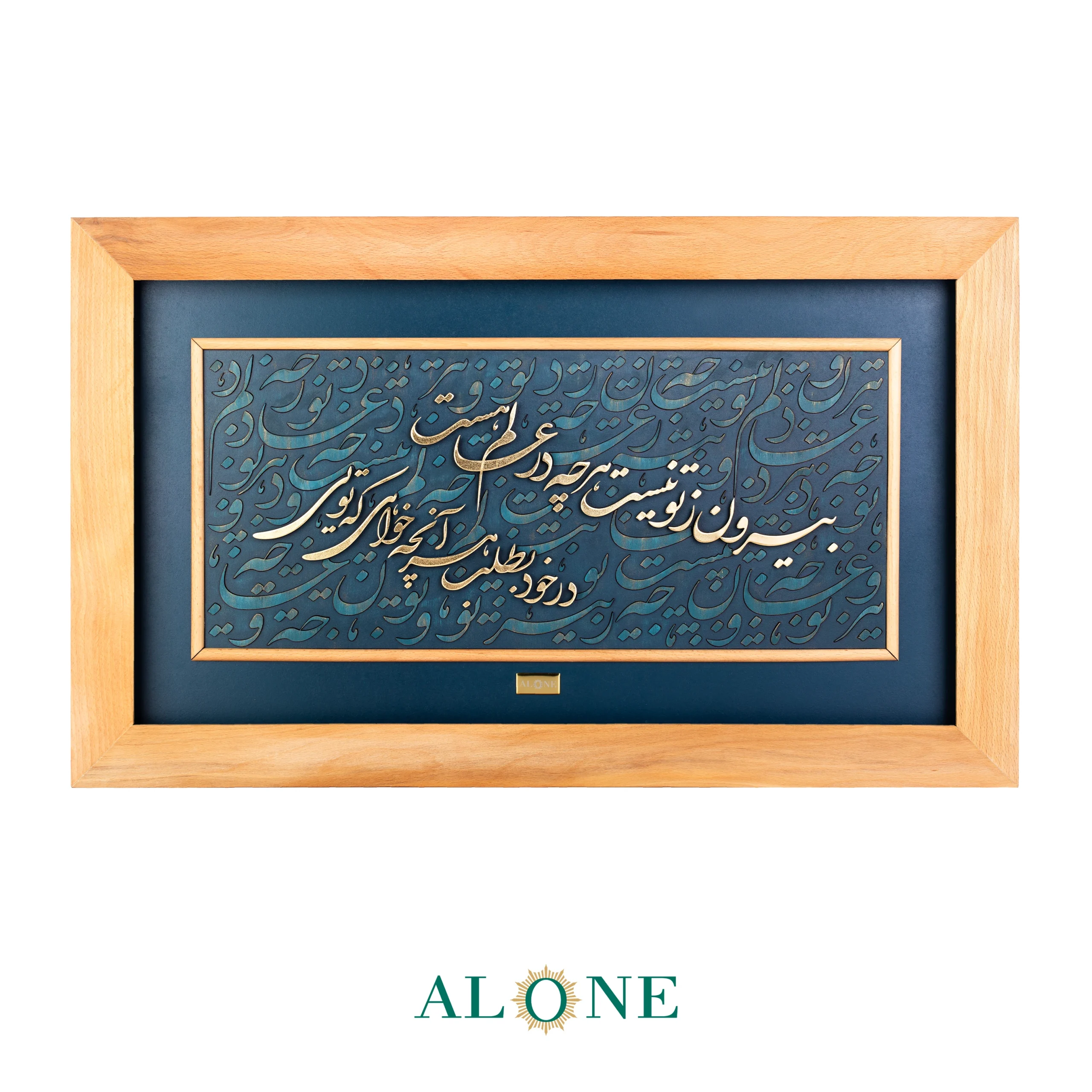 | ویژگی محصول | پس زمینه فریم کالا مقوا ماکت جیر شده میباشد., جنس فریم کالا چوبی می باشد, نماد داخل از ورق طلا 24عیار استفاده شده است. |