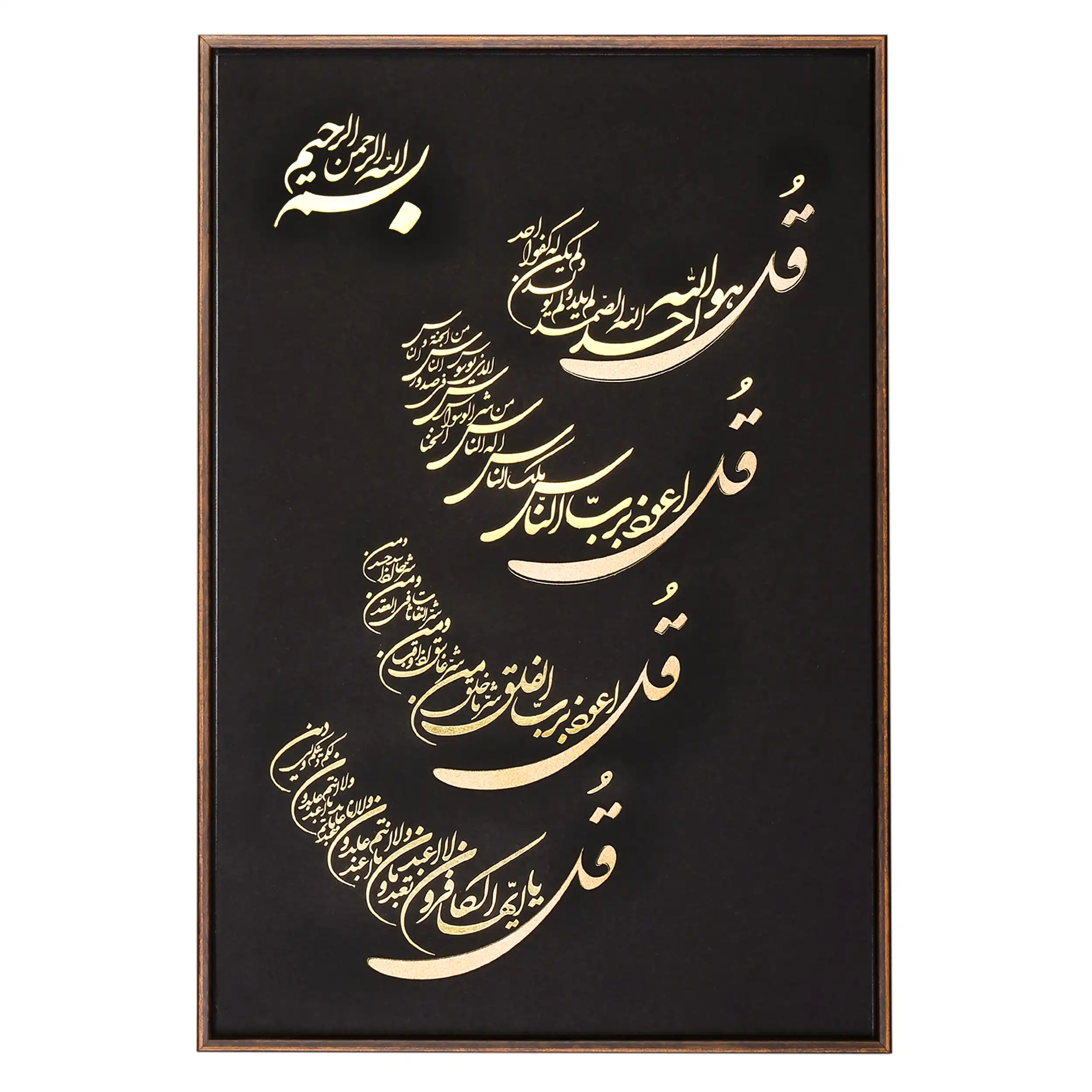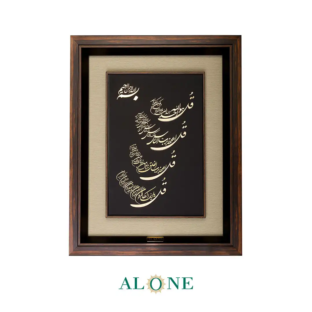 | ویژگی محصول | پس زمینه مخمل, جنس فریم کالا چوبی می باشد, نماد داخل از ورق طلا 24عیار استفاده شده است. |
