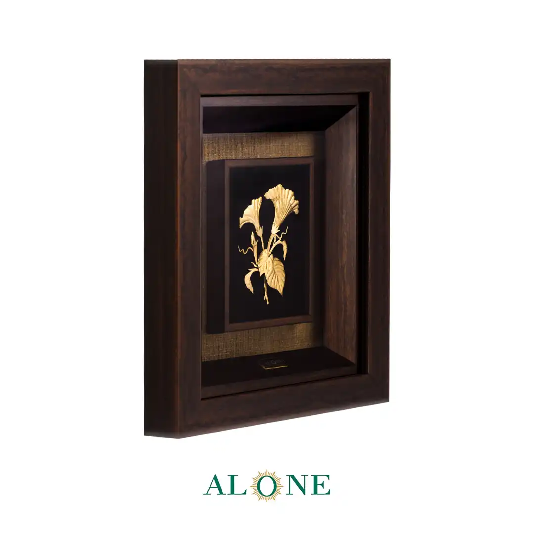 | ویژگی محصول | پس زمینه مخمل, جنس فریم کالا چوبی می باشد, نماد داخل از ورق طلا 24عیار استفاده شده است. |