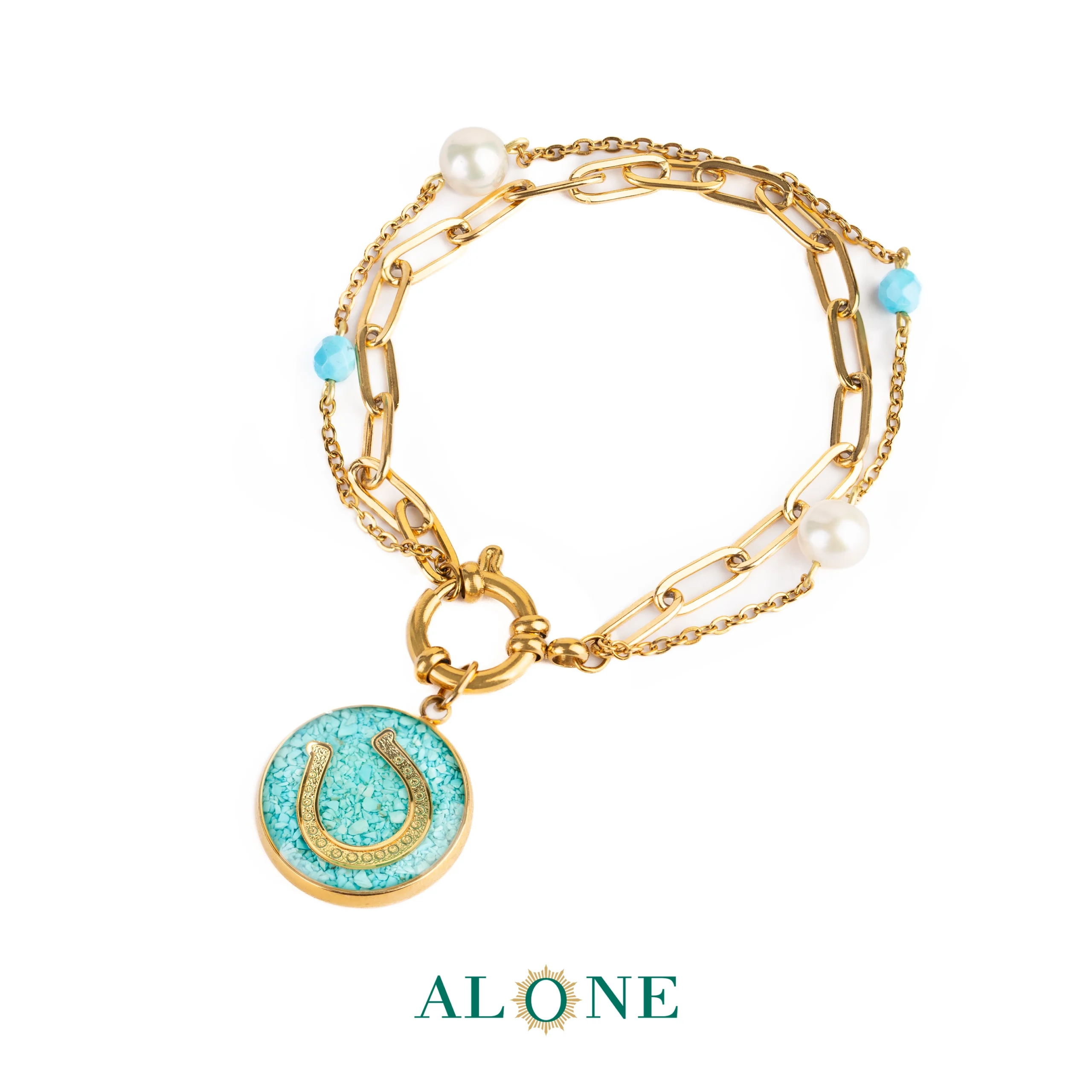 | جنس زنجیر | استیل رنگ ثابت + فیروزه, مروارید |