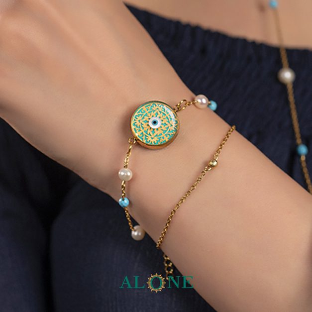 | جنس زنجیر | استیل رنگ ثابت + فیروزه |