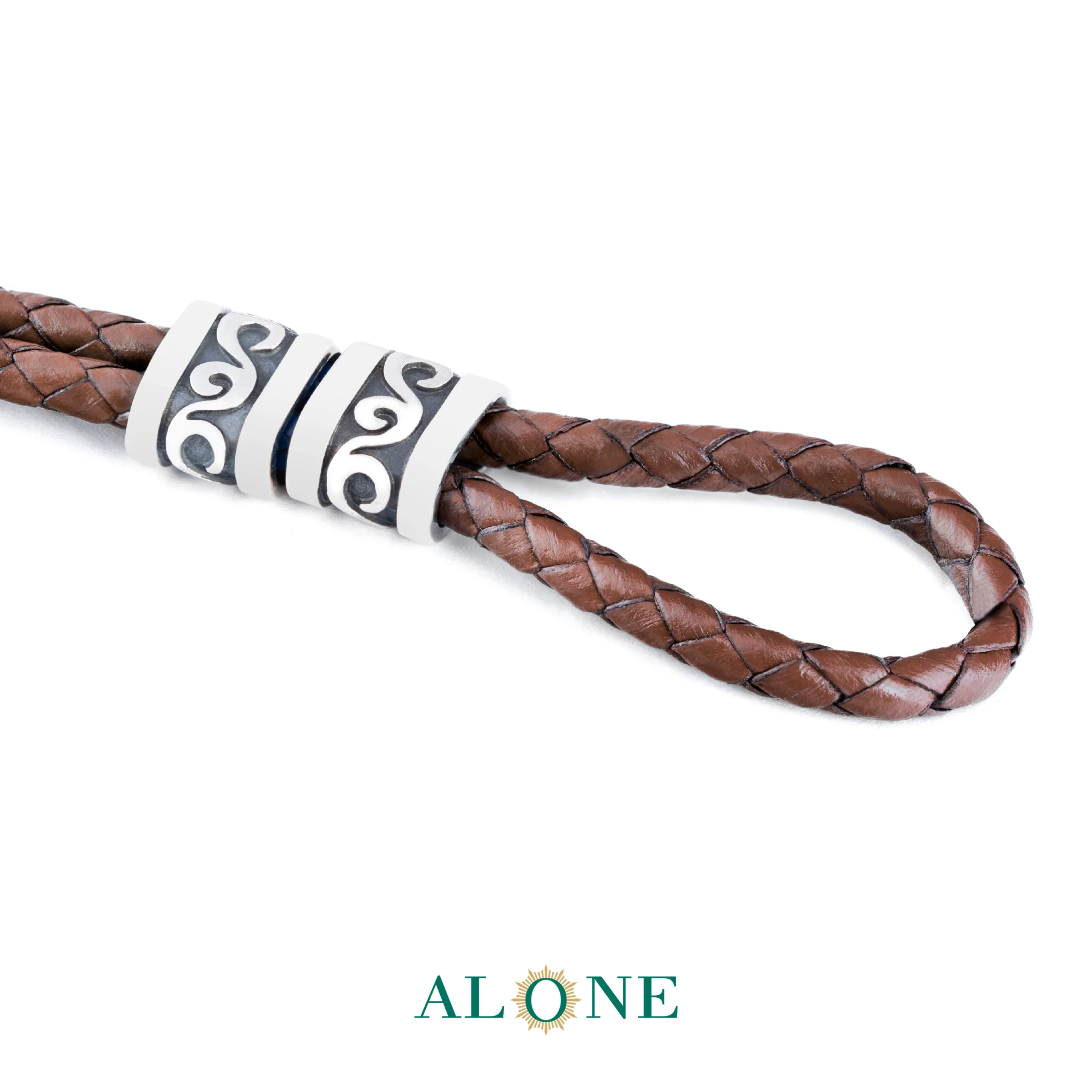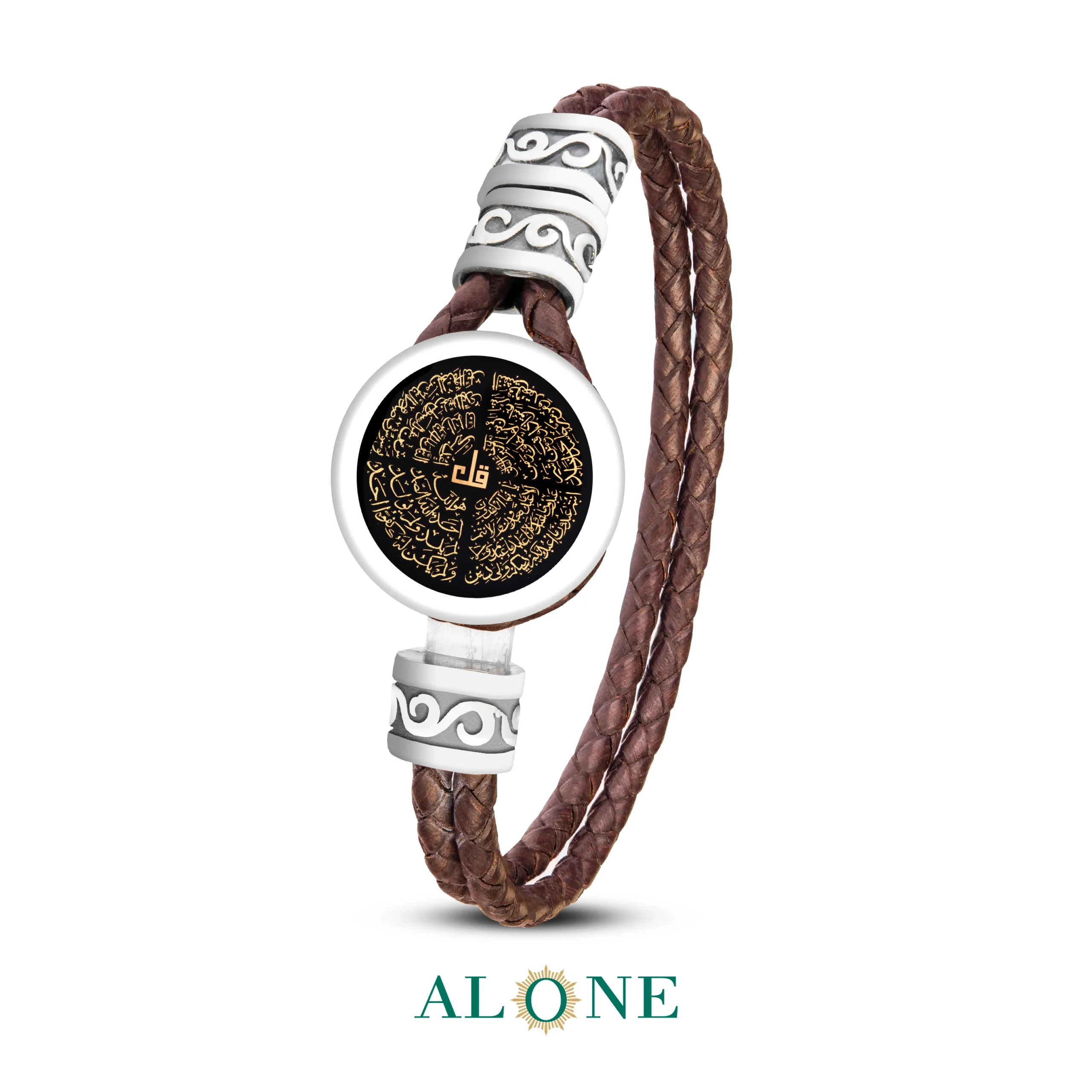دستبند نقره گرد قهوه ای چهار قل