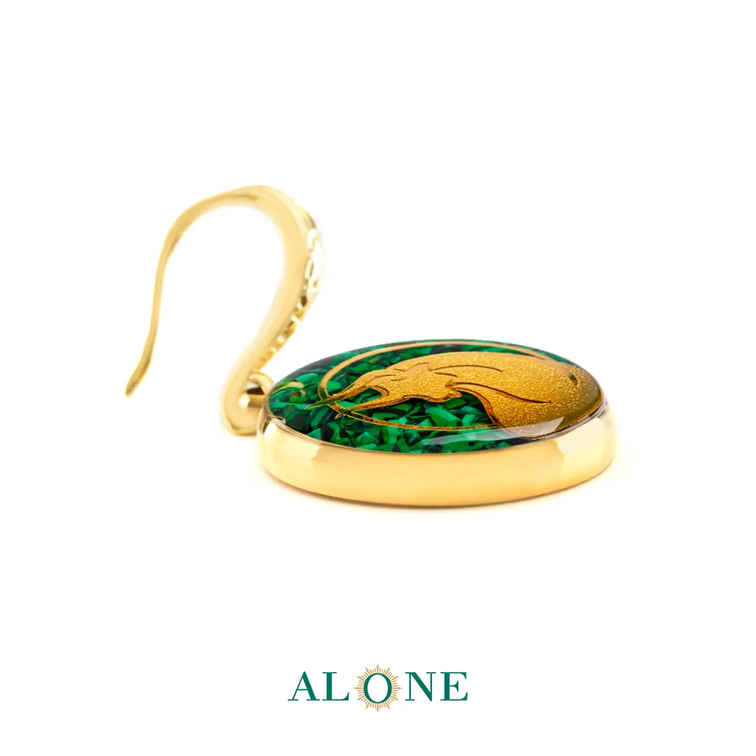 گوشواره ماه تولد اردیبهشت ترکیبی از استیل 316 با سنگ مالاکیت می باشد. استیل 316 هیچ گونه حساسیتی برای پوست بدن ایجاد نمی کند، تیم طراحی الون نهایت دقت و خلاقیت را در تولید این محصول به کار بسته است. ترکیب رنگ بسیار زیبا به همراه کیفیت بالای ساخت این گوشواره از دیگر نکات قابل توجه است که این محصول را چشم نواز می کند. تنها طلای استفاده شده در این محصول نماد “ماه اردیبهشت” است که از جنس ورق طلای 24 عیار مات و براق به ضخامت 92 میکرومتر ، بر روی یک لایه پلیمر قرار گرفته شده و رویه آن با یک لایه رزین پوشش داده شده است.